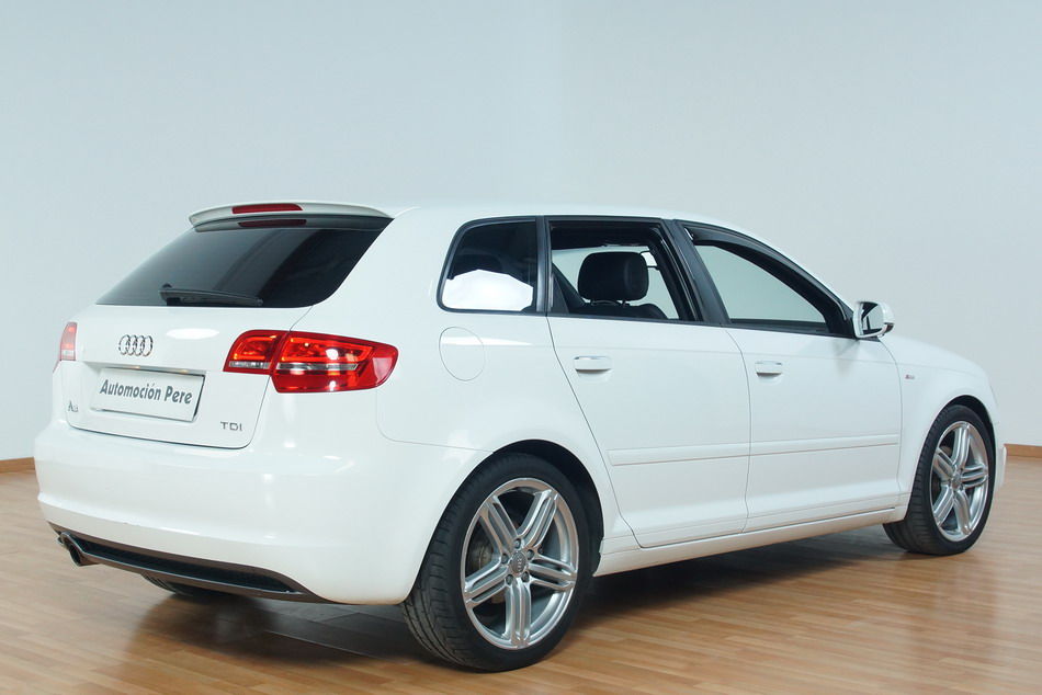 Audi A3 2.0 SportBack TDi 140 CV 6 Vel. S-Line. Año 13/09/2011. Color Blanco. Climatizador Bi-Zona, ABS, ESP, 10 Airbags, 4 Elevalunas Eléctricos, Cierre Centralizado con Mando, Llantas 17", Volante Spor de Cuero, Ordenador de Viaje, Asientos Deportivos, Radio/CD+Aux+MP3, Muy Equipado. Impecable.