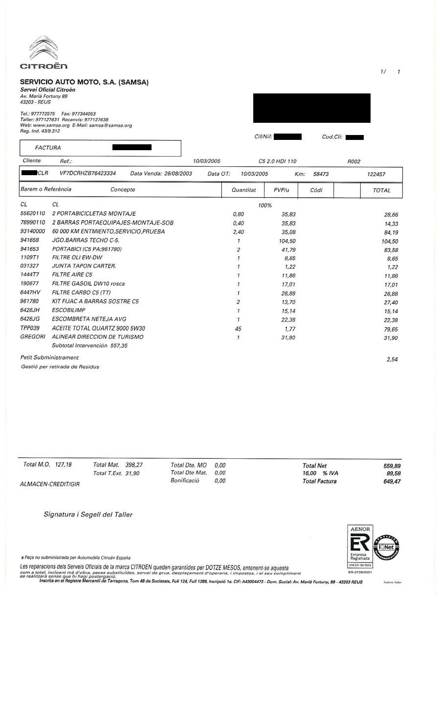 MODELO: C5 2.0 HDI 110 CV VIVACE.