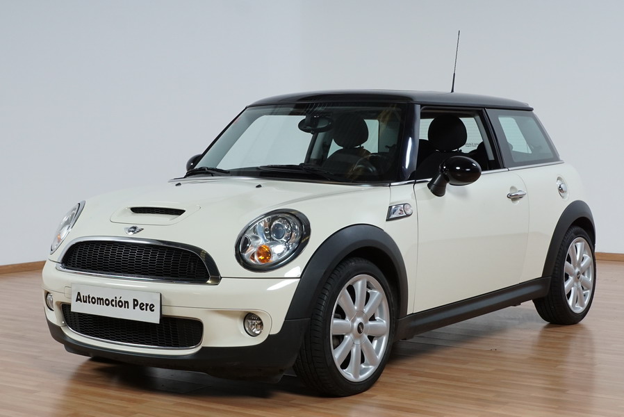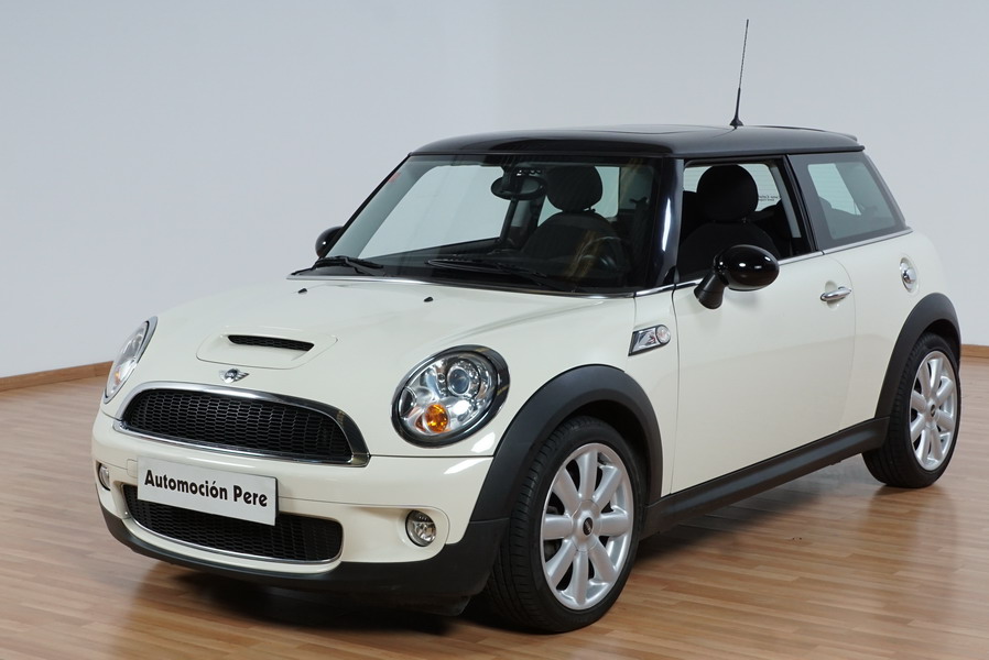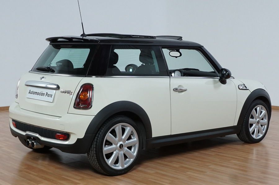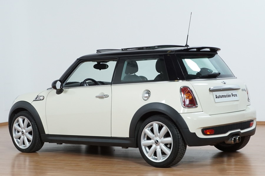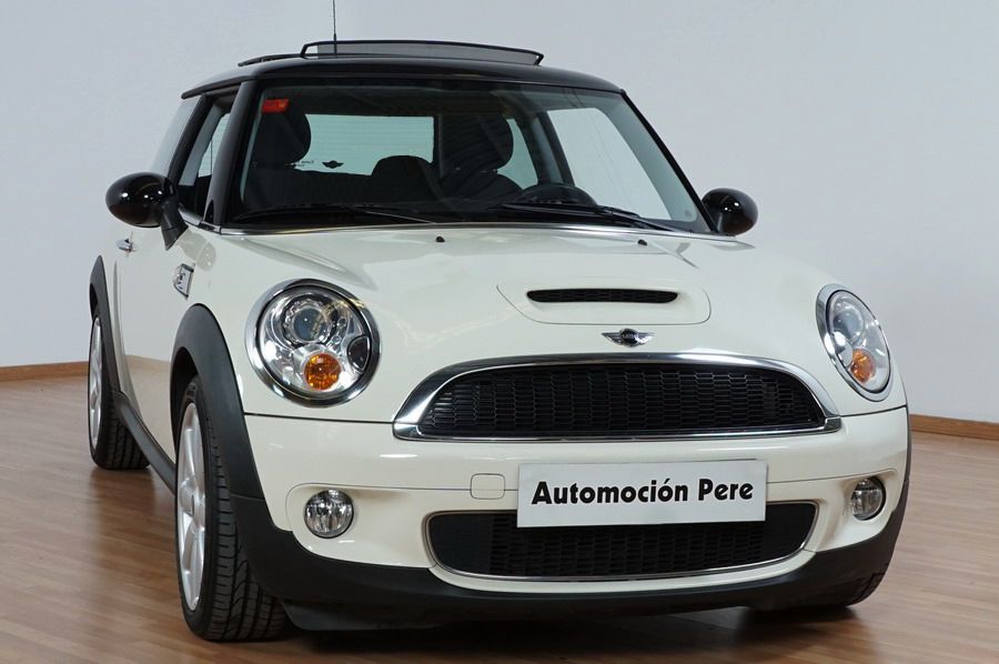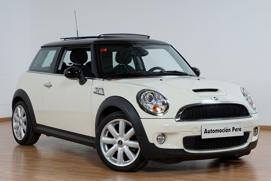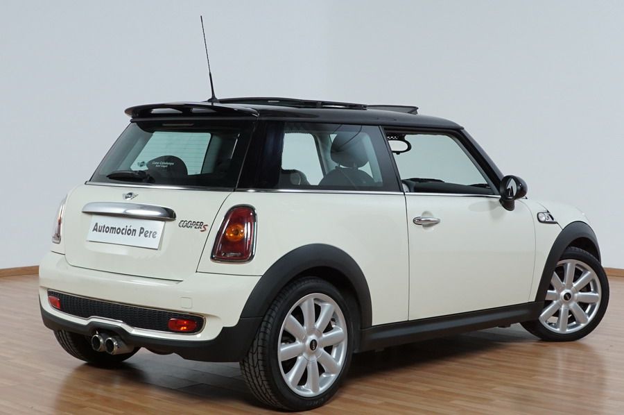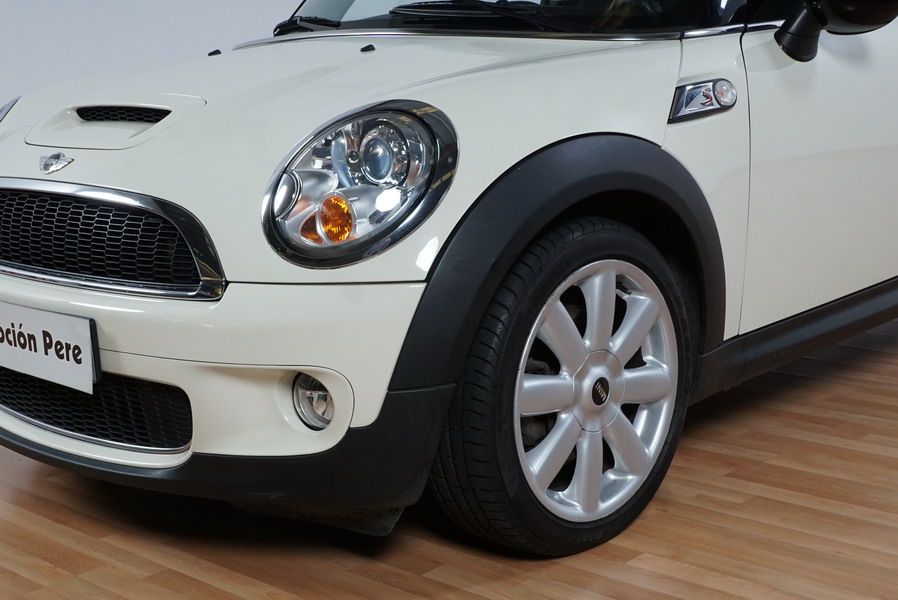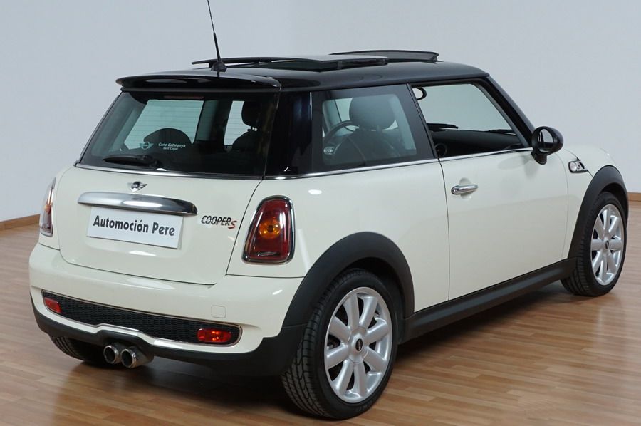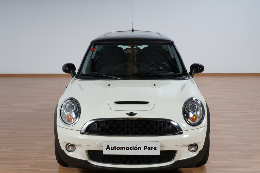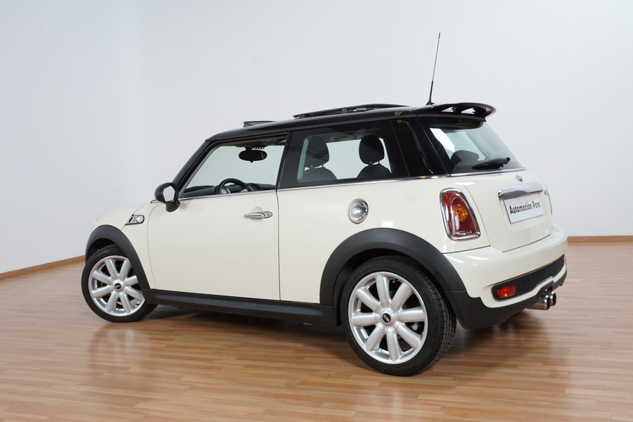 Mini Cooper S 1.6i 175 CV 6 Vel. Año 06/2007. Color Blanco. Climatizador, ABS, ESP, 8 Airbags, Techo Solar Panorámico, Faros Bi-Xenon, Asientos de Deportivos de Cuero/Tela, Ordenador de Viaje, Alarma, Llantas 18", Elevalunas Eléctricos, Cierre Centralizado con Mando, Radio-CD, Rerovisores Eléctricos, Faros Antiniebla, Dirección Asistida, Muy Buen Estado y Pocos Kms.