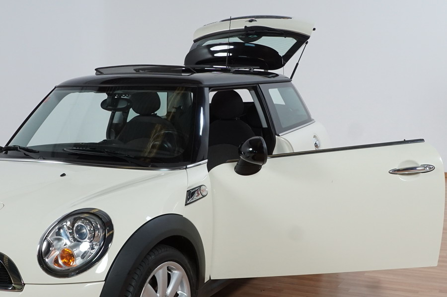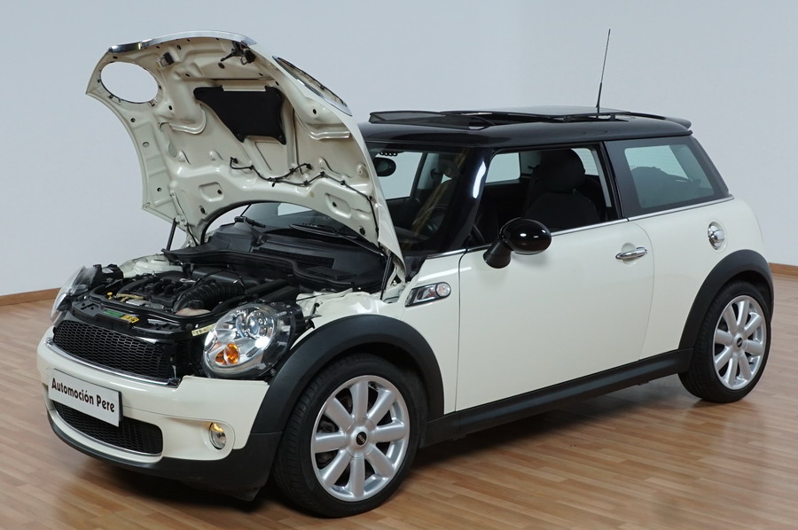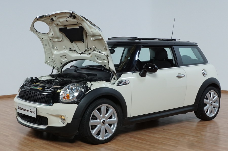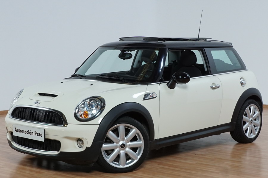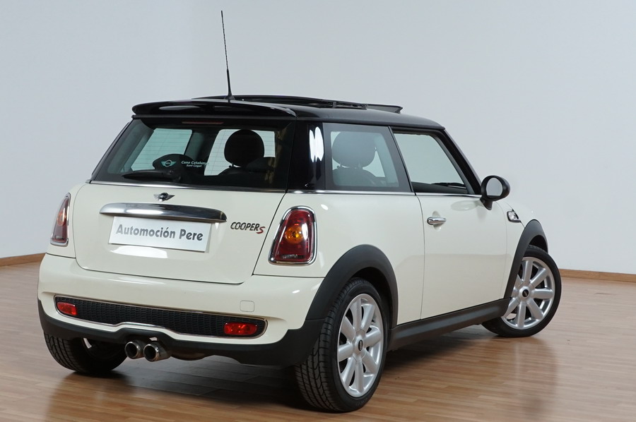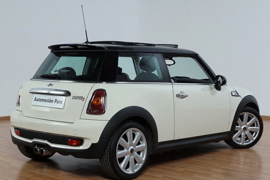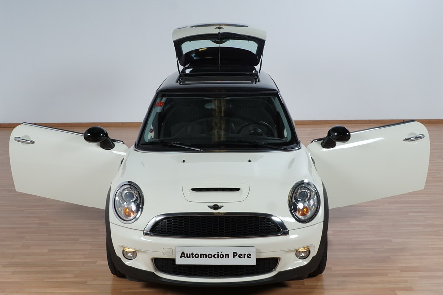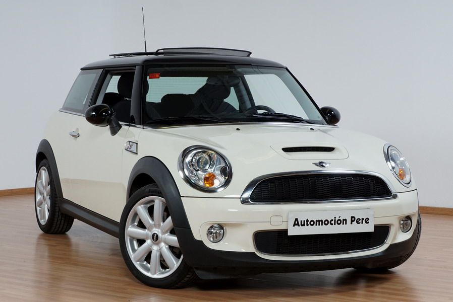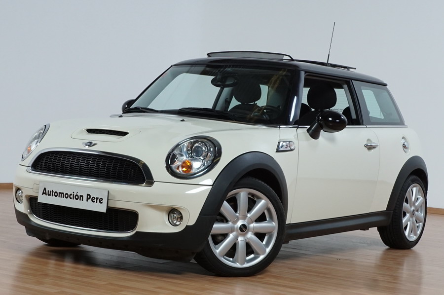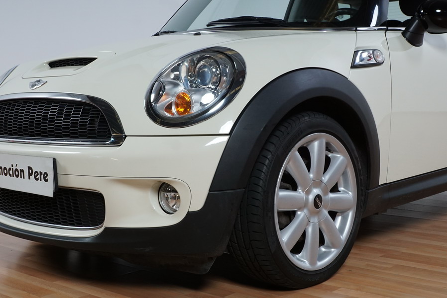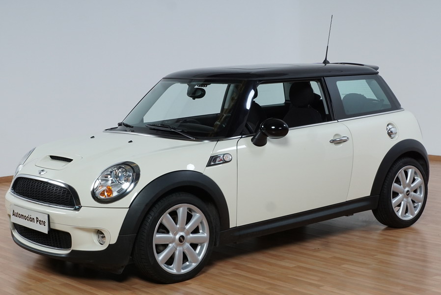 Mini Cooper S 1.6i 175 CV 6 Vel. Año 06/2007. Color Blanco. Climatizador, ABS, ESP, 8 Airbags, Techo Solar Panorámico, Faros Bi-Xenon, Asientos de Deportivos de Cuero/Tela, Ordenador de Viaje, Alarma, Llantas 18", Elevalunas Eléctricos, Cierre Centralizado con Mando, Radio-CD, Rerovisores Eléctricos, Faros Antiniebla, Dirección Asistida, Muy Buen Estado y Pocos Kms.