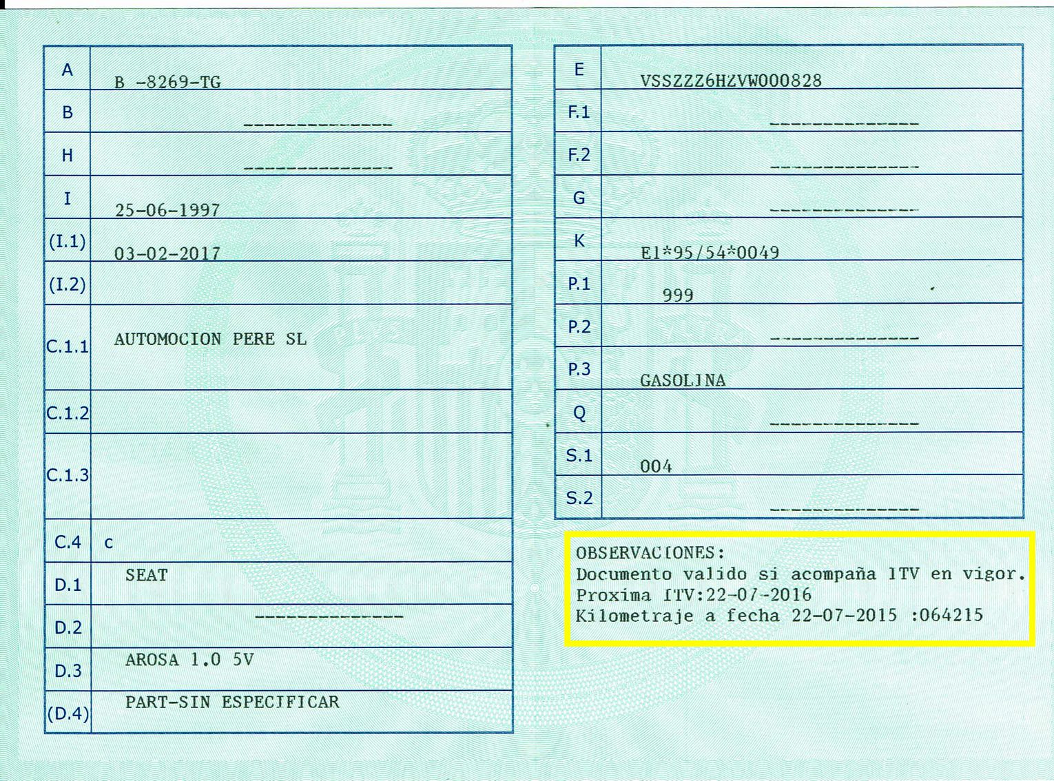 - 1 Solo Propietario (Demostrable con Informe de Trafico)