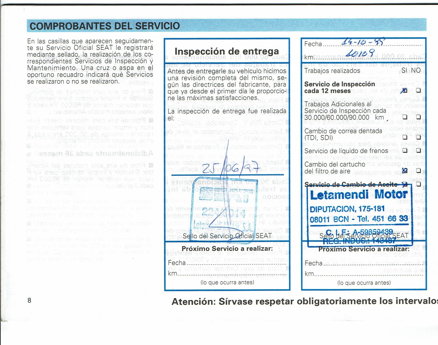 - Disponibilidad Total para poder hacer Cualquier Prueba Dinámica o Mecánica por un Profesional de su Confianza para poder ver y/o Comprobar su Buen Estado y Funcionamiento.