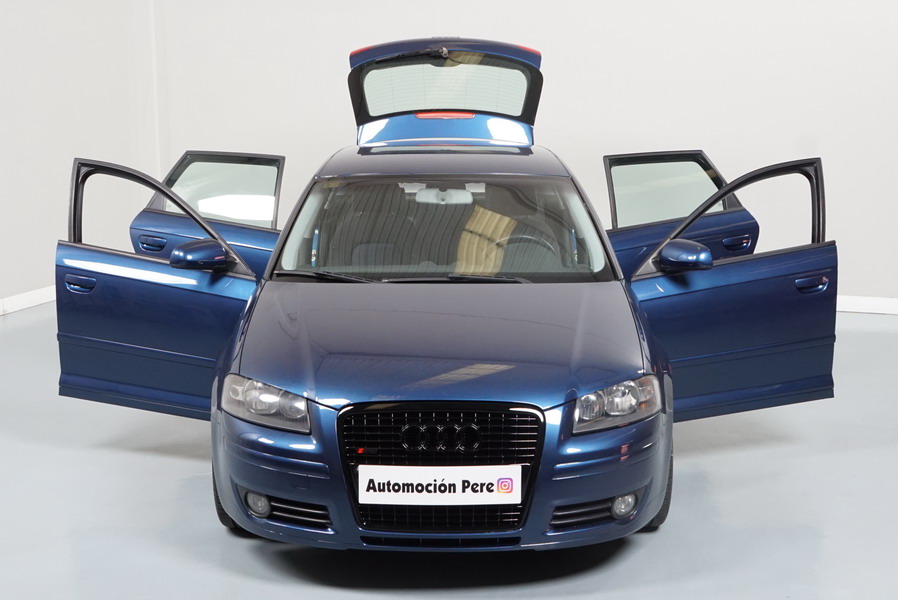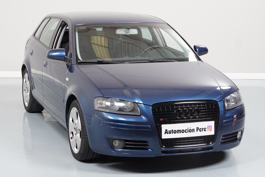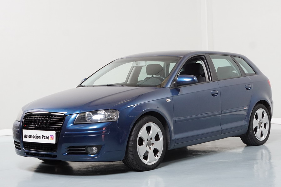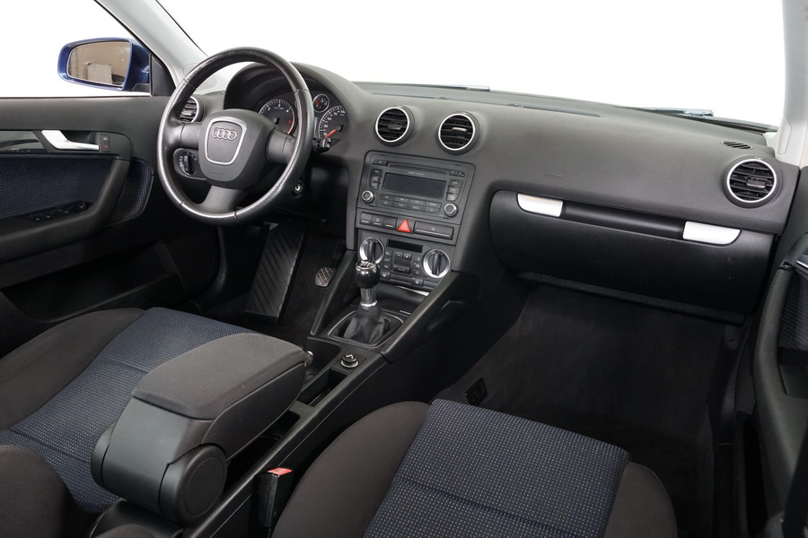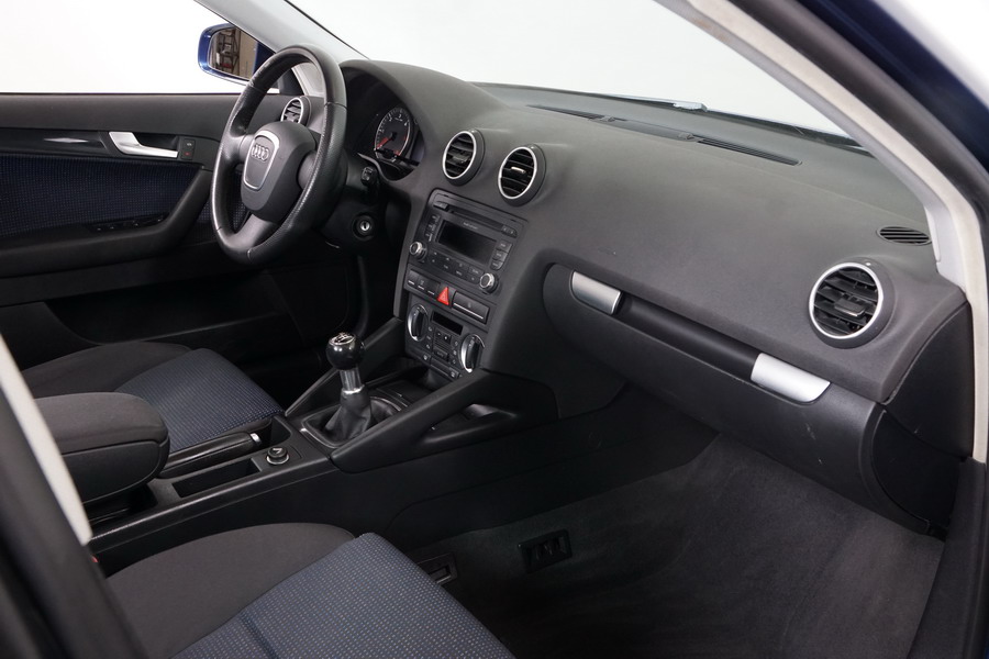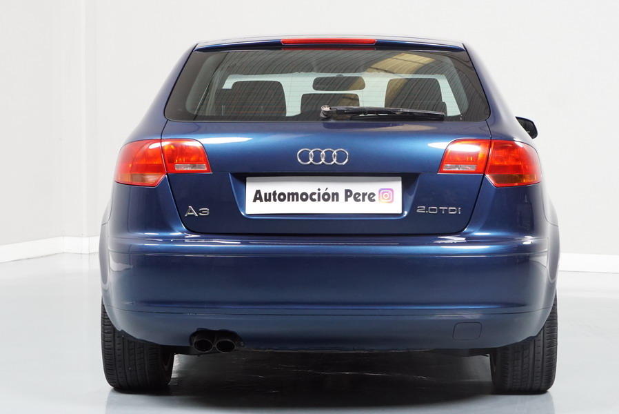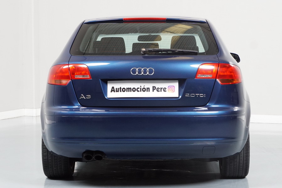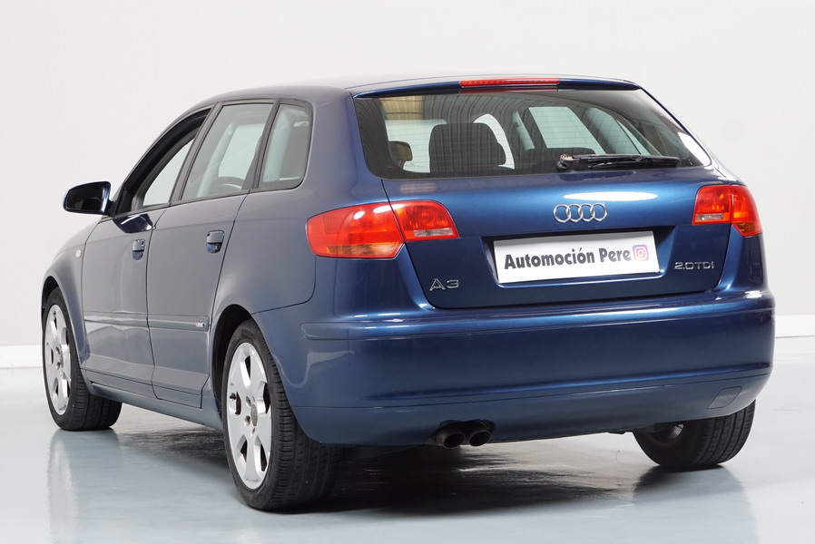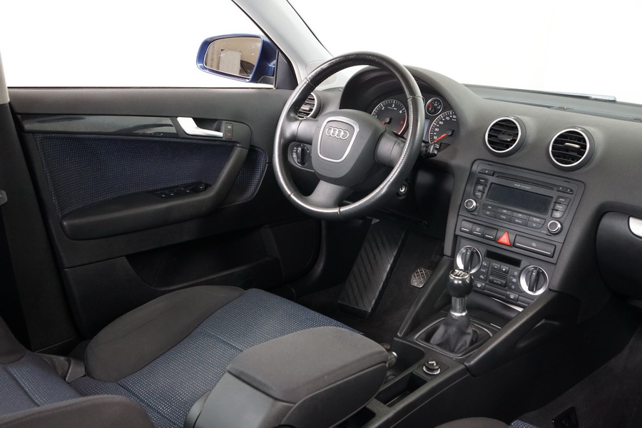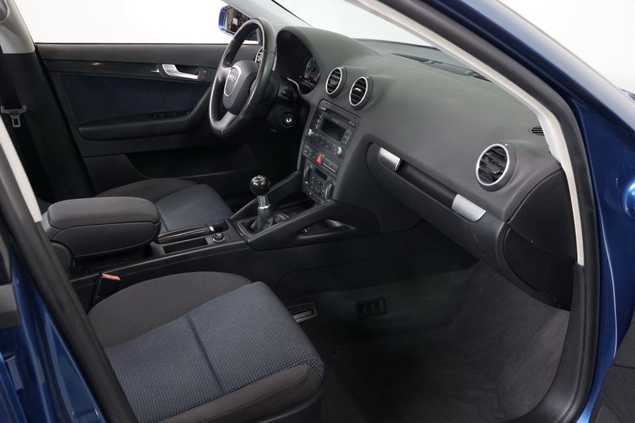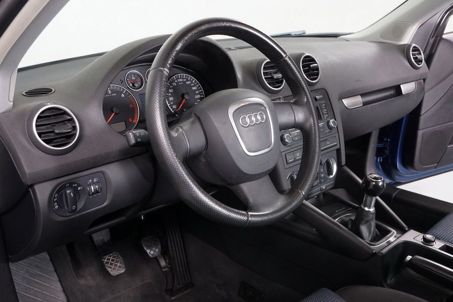 Audi A3 2.0 TDi 140 CV 6 Vel Ambitión SportBack. Año 10/12/2007. Color Azul Metalizado, 5 Puertas. Climatizador Bi-Zona, ABS, ESP, 8 Airbags, 4 Elevalunas Eléctricos, Cierre Centralizado con Mando, Radio/CD+MP3 Original Audi, Apoyabrazos Central Delantero, Ordenador de Viaje, Volante de Cuero, Llantas 17", Faros Antiniebla. Muy Buen Estado. Pocos Kms.