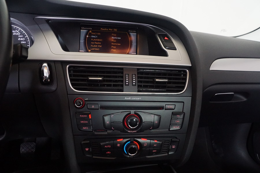 Audi A4 2.0 TDi 136 CV 6 Velocidades. Gris Delfín Metalizado. Climatizador Bi-Zona, ABS, ESP, 8 Airbags, Start/Stop, Llantas 16", Faros Bi-Xenón, Luces Diurnas y de Antiniebla, Volante de Cuero Mutlfuncional Regulable en Altura, Radio/CD+SD+Aux, Bluetooth, Apoyabrazos Centrales Delantero y Trasero, 4 Elevalunas Eléctricos, Cierre Centralizado con Mando, Retrovisores Eléctricos, Alarma, Ordenador de Viaje, Control y Limitador de Velocidad, Sensor de Parking Trasero. Muy Buen Estado y Pocos Kms.