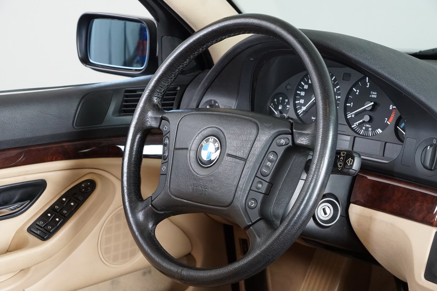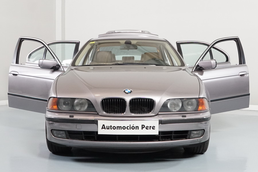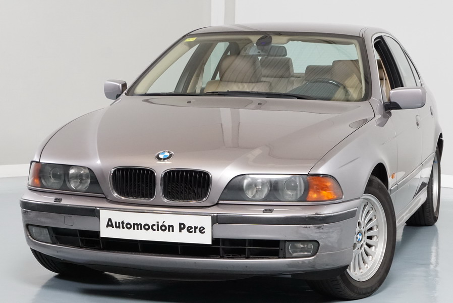 BMW 528i 192 CV Automático/Sec. Año 09/11/1999. Color Aspensilver Metalizado. Climatizador Bi-Zona, ABS, DSC, 6 Airbags, Faros de Xenón y de Antiniebla, Ordenador de Viaje, Asientos de Cuero Beige, Volante Multifuncional, Control de Velocidad, 4 Elevalunas Eléctricos, Cierre Centralizado con Mando, Acabados del Interior en Madera, Retrovisores Eléctricos, Llantas 16". Muy Buen Estado.