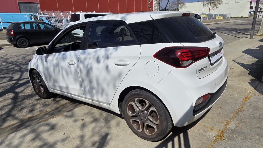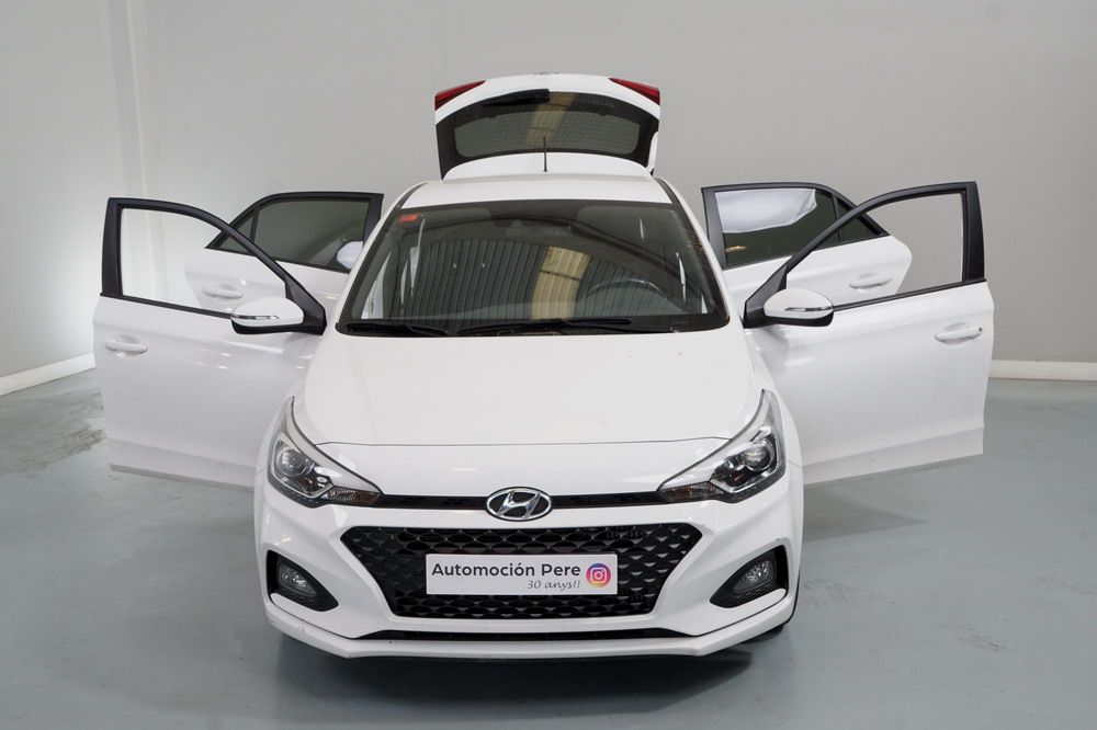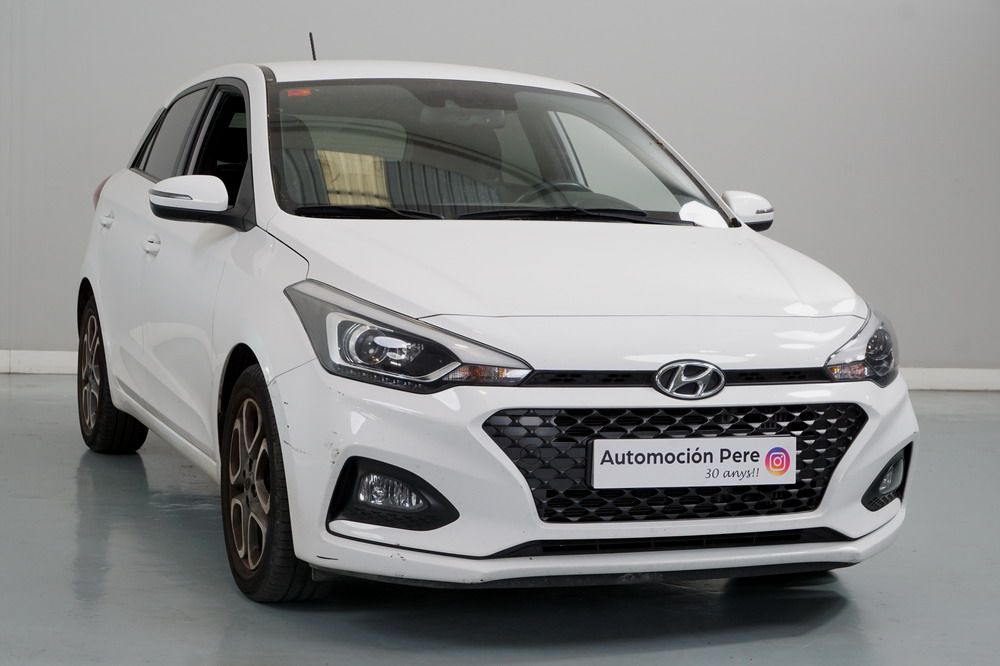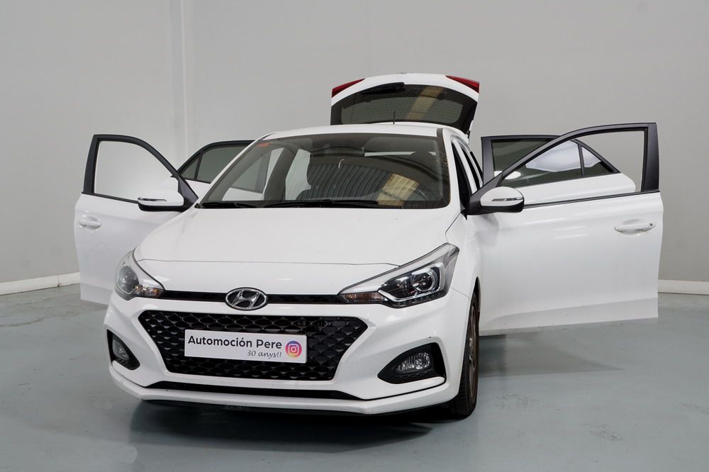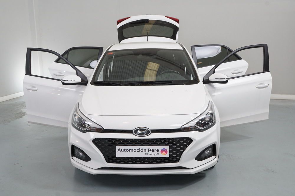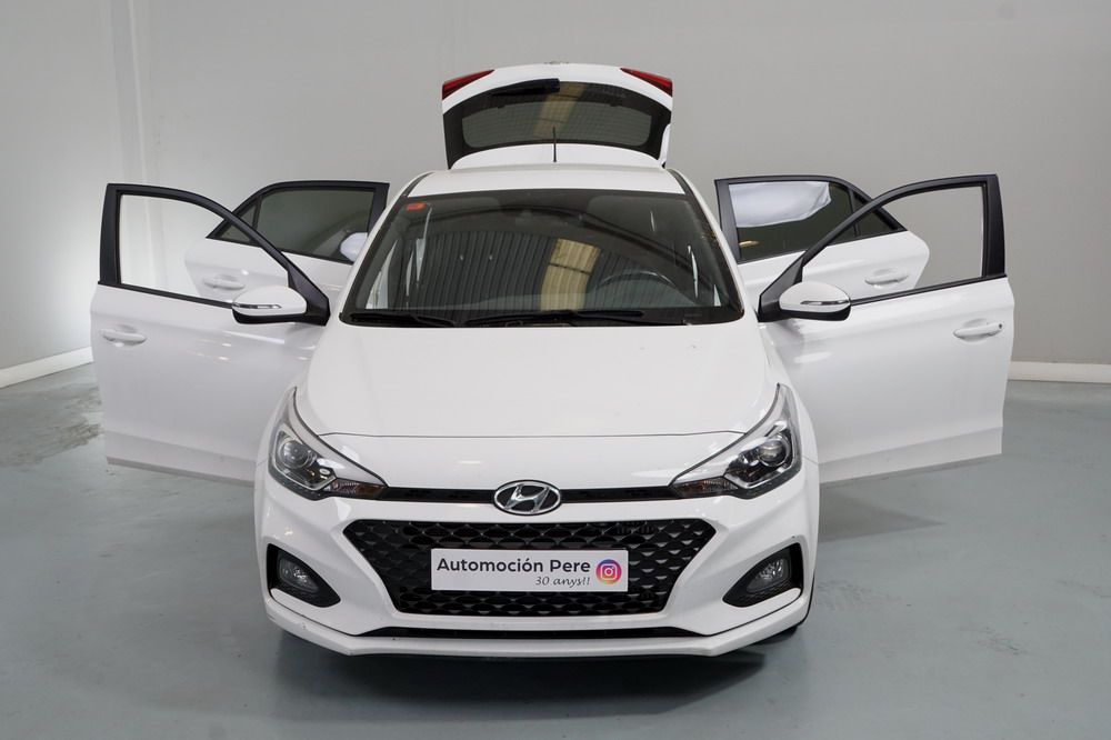 Hyundai i20 1.0 T-GDi 100 CV. Año 26/03/2019. Color Blanco. 5 Puertas. Climatizador, Android Auto y Apple CarPlay, 6 altavoces , Conexión AUX, Conexión Bluetooth para teléfono móvil, Conexión USB, Navegador, Pantalla táctil a color de 17,8 cm (7"), Radio, Kit antipinchazos, Elevalunas eléctricos delanteros y Traseros, Retrovisores Eléctricos y Plegables, Sensor de Luces y de Lluvia, Camara Trasera con Doble Sensor de Parking, Dirección Asistida, Ordenador de Viaje, Control y Limitador de Velocidad "Tempomat", Volante de Cuero regulable Multifuncional, Faros Led Diurnos, Faros Antiniebla, Cierre Centralizado con Mando a Distancia (2 Llaves), Parada y arranque automático del motor Stop & Go, Reposabrazos central delantero con caja portaobjetos, Retrovisores exteriores plegables eléctricamente, Toma de corriente auxiliar, Manetas exteriores color carrocería, Parrilla Dark Grey, Pintura Polar White, Tapicería de tela con costuras en contraste, Volante y pomo de cambio de cuero, Asiento trasero abatible 60/40, Guantera iluminada y Refrigerada, Maletero con iluminación, Portagafas retráctil, Posavasos delanteros, Llantas de aleación 41 cm (195/55 R16), Alarma antirrobo, Lunas traseras sobretintadas, Luz de lectura delantera, Asistente de arranque en cuesta (HAC), Antibloqueo de frenos (ABS), Alerta de cambio involuntario de carril, Airbags laterales delanteros, Airbags de cabeza delanteros y traseros, Airbag frontal pasajero, Airbag frontal conductor, Anclajes Isofix y Top Tether, Aviso de cinturón no colocado, Cierre de seguridad para niños en puertas traseras, Cinturones de seguridad delanteros regulables en altura, Control de crucero. Muy Equipado.