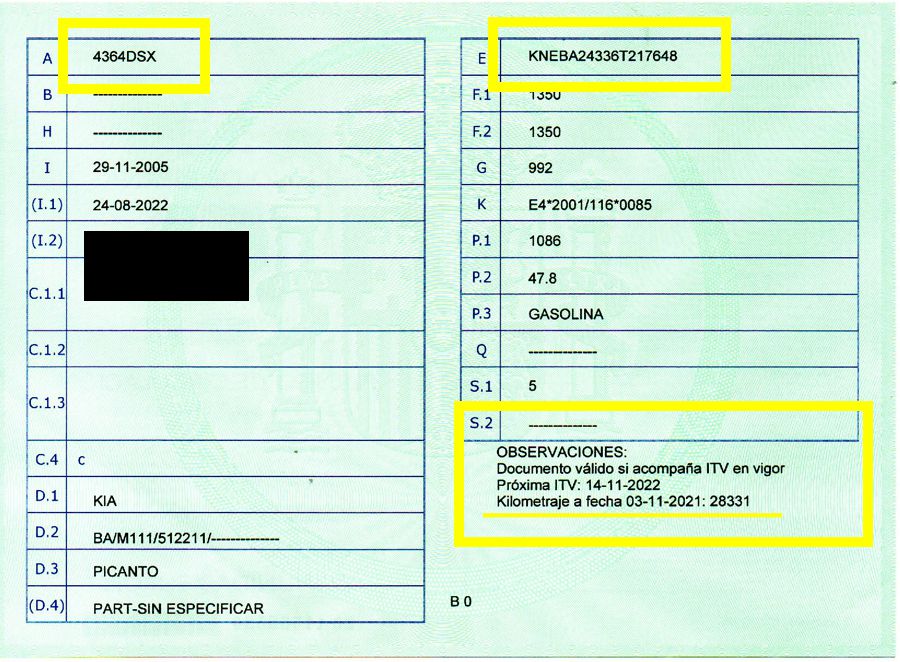 Se Facilita Matricula y Numero de Bastidor para Consultas en la DGT o CARFAX.
