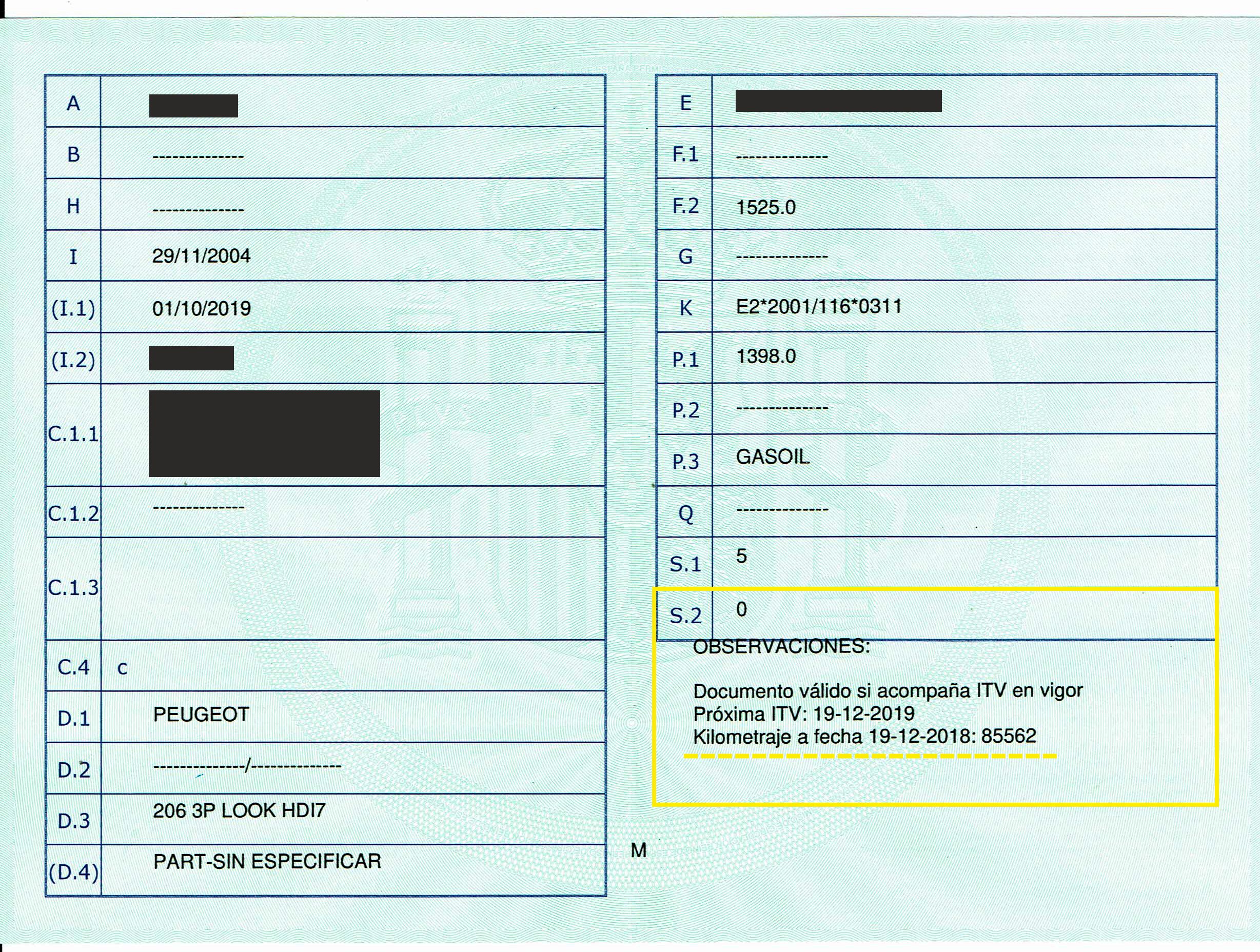 Permiso de Circulación (Kms Registrados por la DGT)
