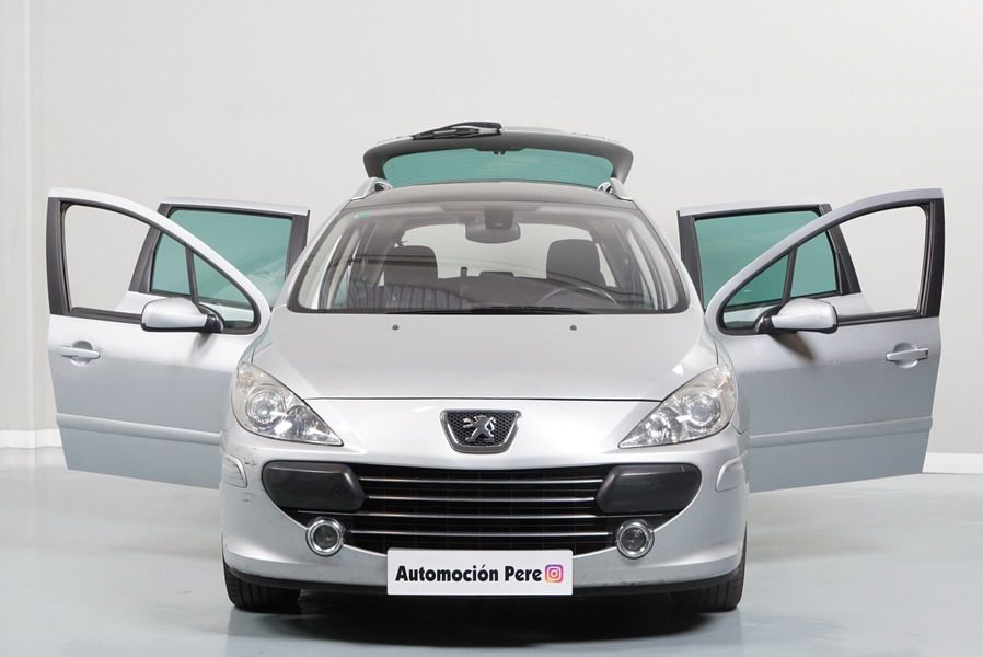 Peugeot 307 1.6 HDi 110 CV 5 Velocidades SW Pack+. Familiar. 5/7 Plazas. Color Gris Plata Metalizado, Climatizador, ABS, 6 Airbags, Techo Solar Panorámico, 4 Elevalunas Eléctricos, Cierre Centralizado con Mando, Retrovisores Eléctricos Retractiles, Radio/CD+MP3 con Mandos en el Volante, Llantas 16", Cristales Tintados Originales Peugeot, Volante de Cuero Regulable, Apoyabrazos Centrales Delanteros, Ordenador de Viaje.