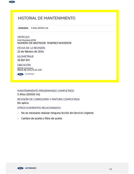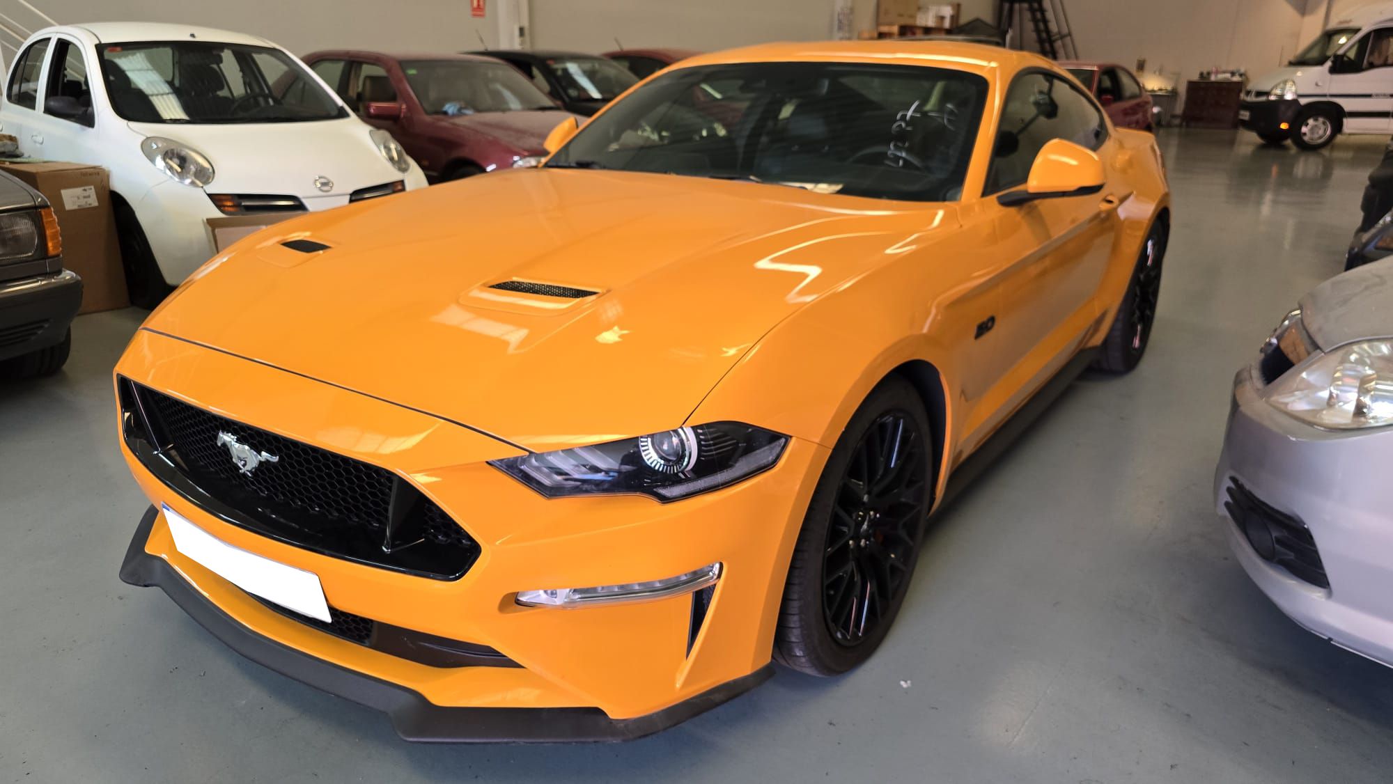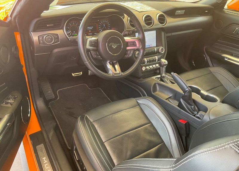 Ford Mustang 2.0 Ti-VCT V8 GT 450 CV 10 Velocidades. Año 21/02/2019.Pintura especial Tropical-Orange. Climatizador automático 2-zonas, Asientos delanteros de Cuero climatizados con Calefacción, Cámara de marcha atrás, Sistema de asistencia para aparcamiento trasero, Dirección asistida eléctrica, Sistema de control por voz y Instalación Bluetooth, Preinstalación Teléfono móvil con Bluetooth-/USB-interfaz, Sistema audio-navegador Ford SD (con Ford SYNC) & Premium Sound Sistema, Ford SYNC 3 con Navegador, 8 Airbags, Diferencial de deslizamiento limitado, Diferencial autoblocante, ESP Programa electrónico de estabilidad (AdvanceTrac), Programa electrónico de estabilidad (ESP), Control de crucero adaptable (Control de crucero adaptable / ACC), Ordenador de a bordo, Alarma antirrobo con Vigilancia del habitáculo interior adicional con suministro eléctrico independiente, Sistema de sonido Bang & Olufsen Play, Audiosystem: Radio / CD-Player, Sistema antibloqueo de frenos (ABS), Asistente a la conducción: sistema de seguridad SYNC con automático Aviso de socorro, Tapicería asientos: cuero Premium, Caja de cambios automática - Modelo: 10R80 (10-marchas), Retrovisor exterior regulable eléctricamente y calefactable, Tubo de potencia doble Sistema de escape, Luneta trasera calefactable, Palanca del freno de mano cuero, Sistema de escape con Control de la válvula de mariposa, Volante calefactable, 12 Altavoces, Pintura especial Tropical-Orange, Tensor del cinturón, Faro LED, Mandos audio en volante, Tren de rodaje con Regulación amortiguador (MagneRide), Asistente a la conducción: Asistente de subidas (Hill-Holder), Asistente a la conducción: Sistema pre-colisión, Sistema-KeyFree, Luces antiniebla LED, Función encendido: Power KeyFree, Sistema de asistencia al conductor: asistencia a la frenada de emergencia, Parachoques detrás Diseño Sport con Difusor, Lavafaros (Equipo lavafaros), Volante (Cuero), Sistema control presión neumáticos, Llantas de aleación delante / detrás 9x19 / 9 5x19 (10 radios Y-Design negro brillante), Salpicadero Parte superior piel, Paquete Premium 2, Sistema Line-Lock, Pedales Aluminio, Paquete Performance, My Key (2. llaves del vehículo programable), Luz del suelo en Retrovisor exterior, Kit reparación de neumáticos, Distribuidor eléctrónico de frenada, Conexión AUX-IN, Intermitente en Retrovisor exterior integrado, Limpiaparabrisas con Sensor de lluvia, Cierre centralizado con Mando a distancia.