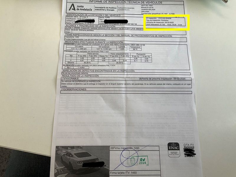 Se Facilita Matricula y Numero de Bastidor para Consultas en la DGT o CARFAX.
