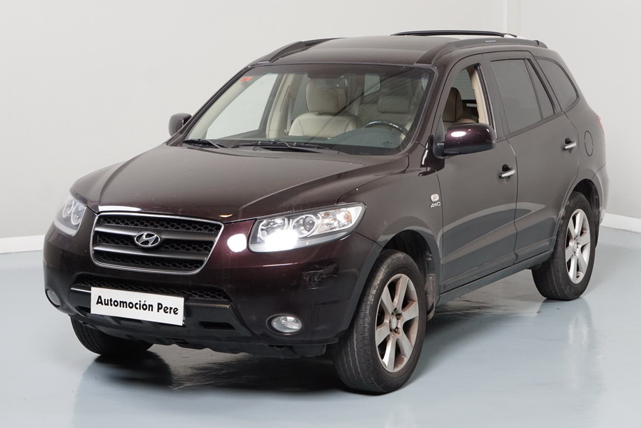 Hyundai Santa Fe V6 Style 4x4 190 CV Automático/Sec. Año 03/01/2008. Color Burdeos Metalizado. Climatizador Bi-Zona, ABS, ESP, 10 Airbags, Techo Solar Eléctrico, Asientos de Cuero Beige Eléctricos y con Calefacción , Sensor de Parking trasero, Ordenador de Viaje, Volante de Cuero Multifuncional Regulable en altura, Cierre Centralizado con Mando, 4 Elevalunas Eléctricos, Retrovisores Retractiles, Radio/CD, Sistema de Navegación GPS Original Hyundai, Cristales Tintados Originales, Llantas 17", Faros Antiniebla, Apoyabrazos Centrales Delantero y Trasero.
