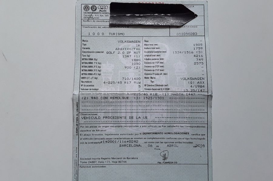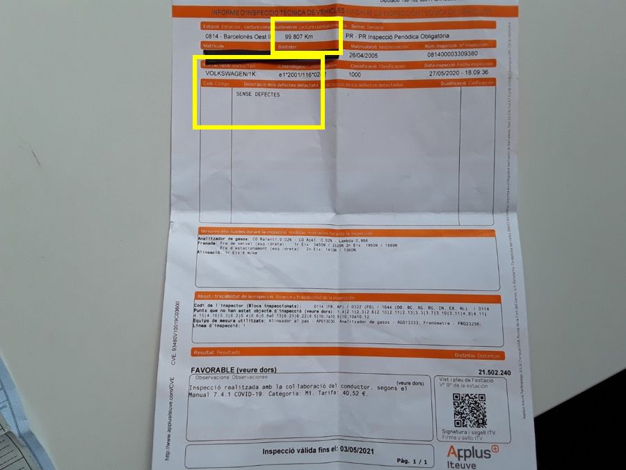 Informe de la Ultima ITV "Sin Defectos"