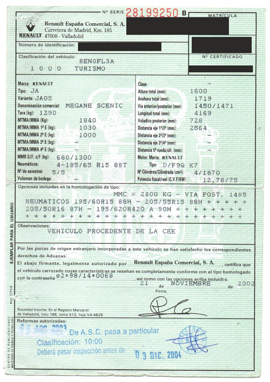 Renault Megane Scenic 1.9 dCi 101 CV Expressión. Año 02/12/2002. Color Gris Metalizado. Aire Acondicionado, ABS, 4 Airbags, Elevalunas Eléctricos, Cierre Centralizado con Mando, Radio, Dirección Asistida, Faros Antiniebla, Asientos Delanteros y Volante Regulables en Altura, Luneta Trasera Practicable, Asientos ISOFIX. Muy Buen Estado Mecánico.