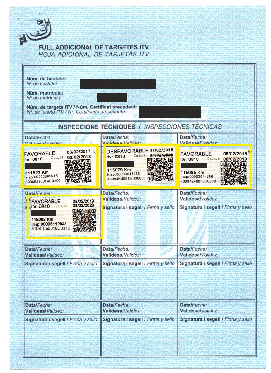 Todas las ITV con los Kms Registrados.