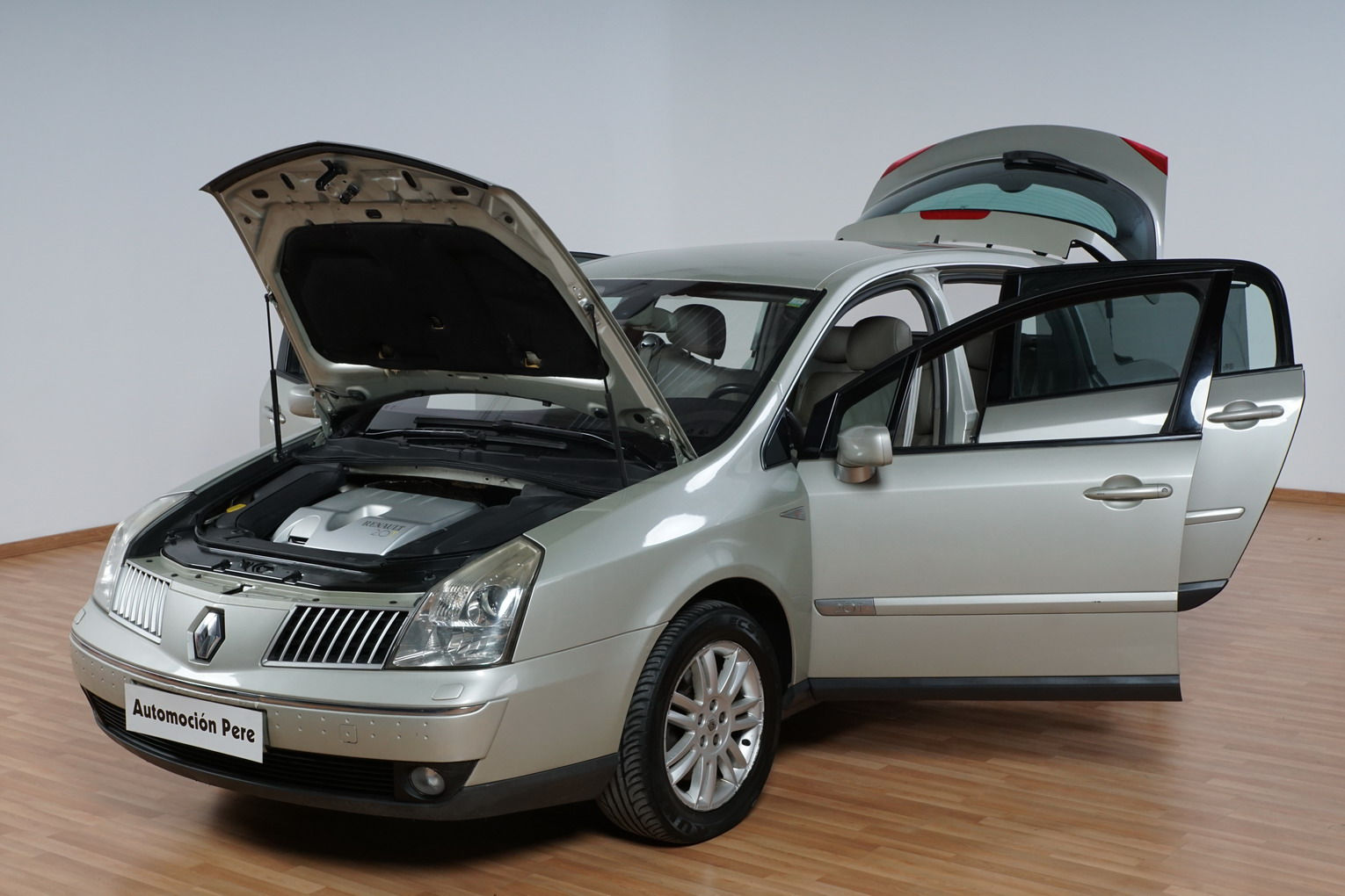 Renault Velsatis 2.0t 163 CV Initiale. Año 29/07/2003, Color Beige Metalizado. Climatizador Bi-Zona, ABS, ESP, 10 Airbags, Faros Antiniebla y Bi-Xenon, Asientos de Cuero Beige con Regulación Eléctrica y con Calefacción, Llantas 18", Ordenador de Viaje, Control y Limitador de Velocidad, Sensor de Luces, de Lluvia, Retrovisores Plegables Eléctricos, Radio-CD con Mandos en el Volante, Apoyabrazos Centrales Delantero y Trasero, Cortinas Traseras Originales Renault, Cristales Tintados, Volante de Cuero. Muy Buen Estado.