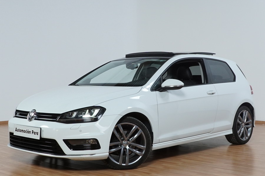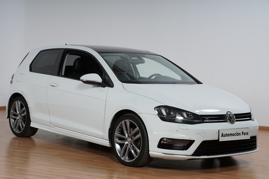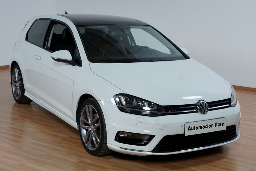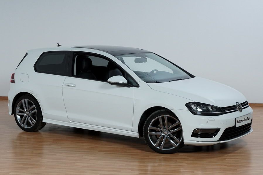 Volkswagen Golf VII 2.0 TDi R-Line 150 CV 6 Velocidades. Año 08/2013. Color Blanco, 3 Puertas. Climatizador Bi-Zona, ABS, ESP, Techo Solar Panoramico, Alarma, Luces Led Direccionales Paquete R-LINE interior y exterior