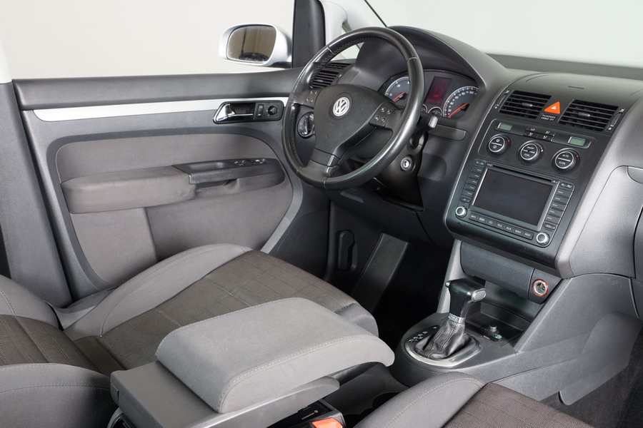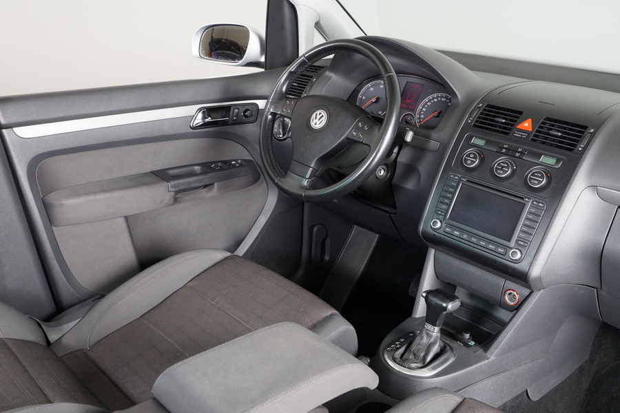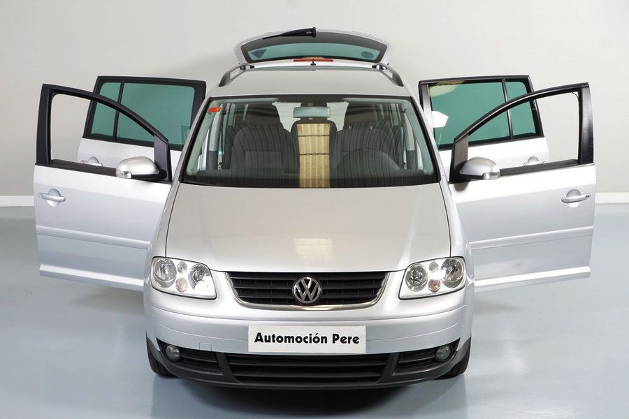 Volkswagen Touran 2.0 TDi 140 CV DSG/6 con Levas en el Volante. Highline 5 Plazas, Color Gris Plata Metalizado,Año 30/03/2006. Climatizador Bi-Zona, ABS, ESP, 10 Airbags, 4 Elevalunas Eléctricos, Cierre Centralizado con Mando, Radio/CD con Cargador, Bluetooth Parrot, Sistema de Navegación GPS (NO Actualizado) Faros Antiniebla, Ordenador de Viaje, Sensor Trasero de Parking, Volante de Cuero Multifuncional Regulable en Altura y Profundidad, Control y Limitador de Velocidad "Tempomat", Cristales Tintados Originales Volkswagen, Retrovisores Eléctricos y Retractiles, Apoyabrazos Central Delantero, Asientos Traseros con Isofix.
